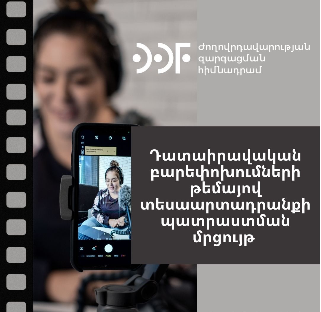 Ժողովրդավարության զարգացման հիմնադրամը «Արդարացի դատաիրավական բարեփոխումներ» ծրագրի շրջանակում հայտարարում է տեսաարտադրանքի՝ հոլովակների, տեսանյութերի, ռիլերի, ֆիլմերի, անիմացիոն տեսանյութերի բաց մրցույթ, որի նպատակն է բարձրացնել հասարակության իրազեկվածությունը և ներգրավվածությունը Հայաստանում ընթացող դատաիրավական բարեփոխումների գործընթացում։